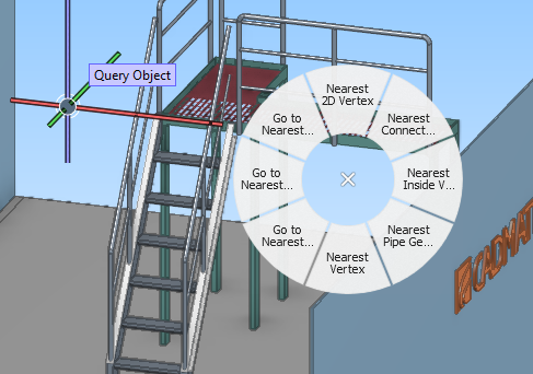 In the radial menu you can see and activate the commands that are applicable in the current context. Here is an example of the menu with navigation commands on it: