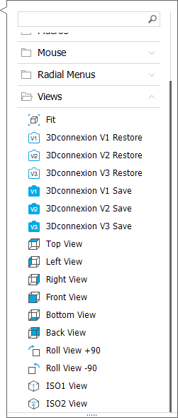 3Dconnexion devices have several built-in view commands that they recommend every software to support. The commands shown below are supported in CADMATIC, except Restore, Save, and Roll View commands are not supported. The built-in view commands are always available, but they have no effect unless you are in a 3D-digitizing context.