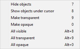 Select Make transparent or press 9. This command makes objects in front of the cursor to be transparent.