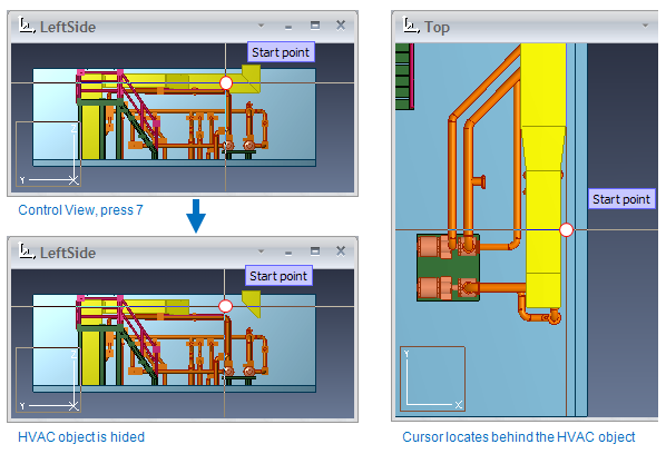 There are several commands that you can use to control visibility of objects in the shaded controlling view during 3D-digitizing.