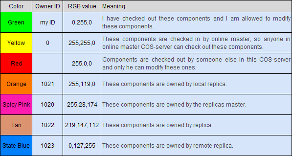 The following colors are used in CoDesigner projects with several COS-servers: