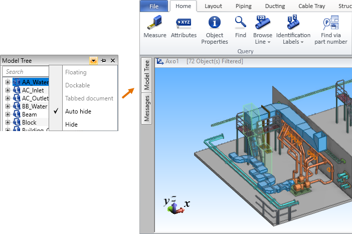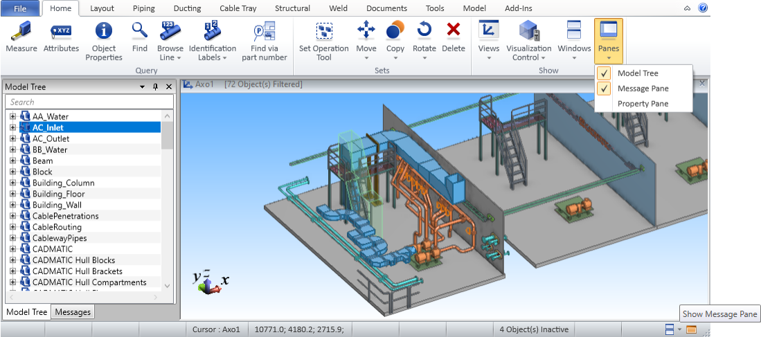 Panes > Model Tree shows or hides the model tree pane. See Model Tree pane.