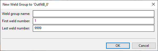 Click OK. The New Weld Group to '<space>' dialog opens.