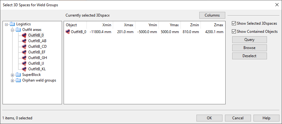 Select Create. The Select 3D Spaces for Weld Groups containment browser opens.