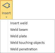 Insert weld allows you to create a new weld by manually defining the weld path. The new weld is added as a member to the active weld group and added to the active weld system. A weld path is a kind of 3D polyline with line and arc segments modeled with a small radius cylinders and tori. The weld path is the visual geometric 3D instance of a weld. When selecting a weld in 3D you actually pick the weld path: