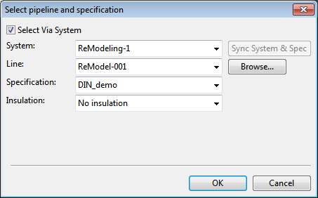 Select Piping > Route > Fit to Point Clouds. The Select pipeline and specification dialog opens.