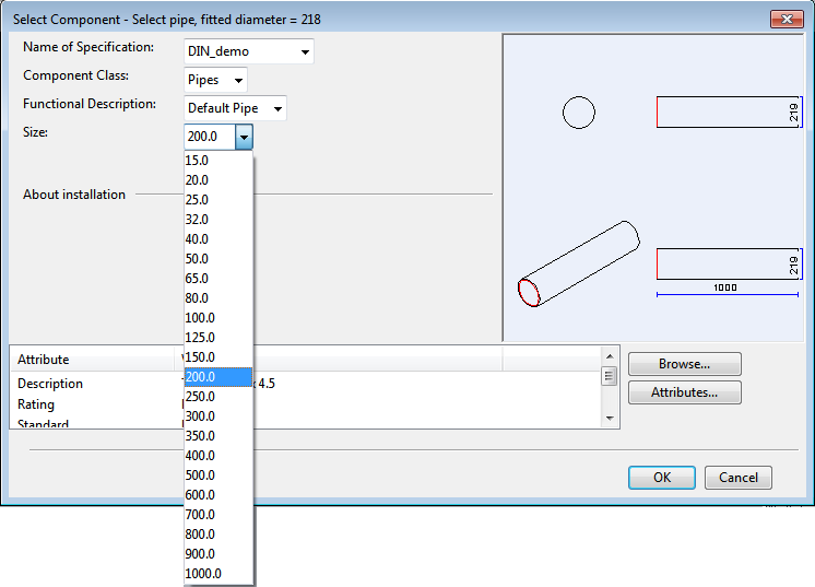 Set the size for the pipe in the dialog.
