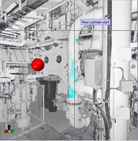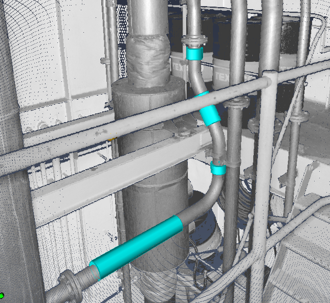 Left-click to select the start and end points of the cylinder so that they are somewhat aligned with the centerline of the pipe.