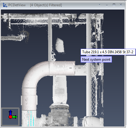 Click OK. The program starts the fitting of a cylinder to the selected point cloud points.