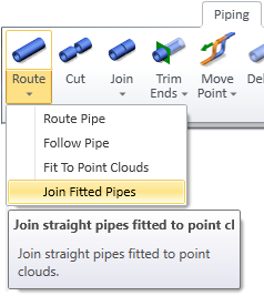Select Piping > Route > Join Fitted Pipes.