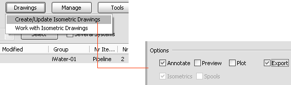 In the Piping Isometrics dialog, Select Drawings > Create isometric/spool drawings.