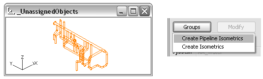 The _UnassignedObjects dialog shows the pipelines which are not used in an Isometric Group. A pipeline can be a member of only one isometric group.