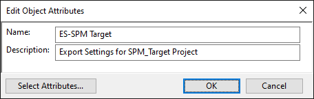 In this tutorial, the name of the settings object is ES-SPM Target.