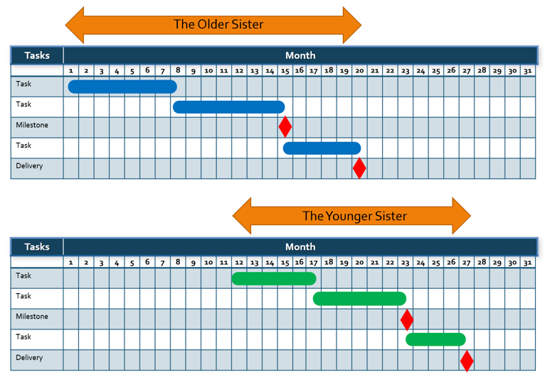 The younger sister shares many things from the older sister, but in practice is never an exact copy of it. There can be various reasons for the projects not being carried out in exactly the same way, such as: