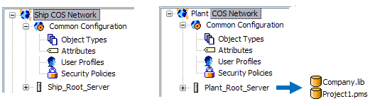 Common Configuration (schema) defines the entities that are shared by every project in the COS network: object types, attributes, user profiles, and security policies. The common configuration is replicated to all servers and all databases in the COS network. This means that all libraries and projects have the same attributes and object types.