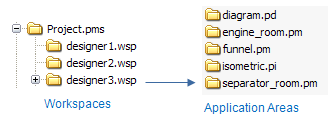 Note: One designer can have several Plant Modeller application areas in one project, but only one Piping Isometrics & Spools area and one P&ID area (because there is no need to have several).