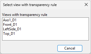 - In the Drawing Views dialog, select the drawing views to which to apply the transparency rule.