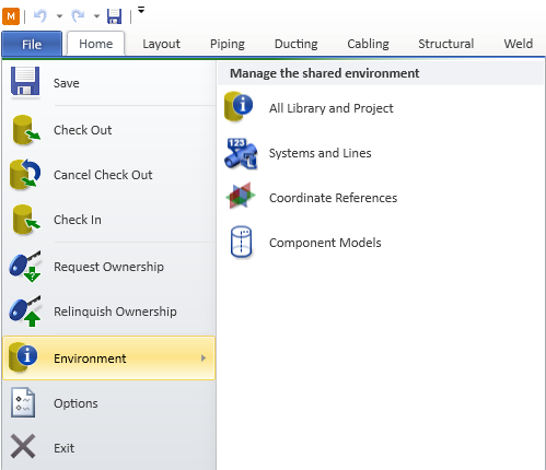 - All Library and Project – Opens the Project Environment dialog (object browser) where you can manage project data.