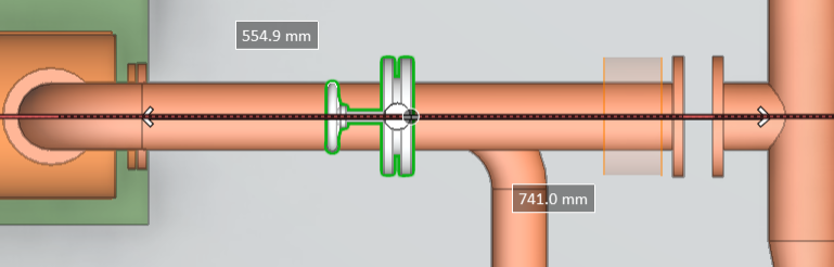 You can slide a Standard Component along the straight pipe the component is connected to. If sliding a Standard Component that has a hole request, the tool also tries to update the location of the hole request.