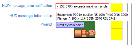 The term head-up display, or HUD, is commonly used to refer to any transparent display that presents data without requiring the user to look away from the current viewpoint. In Plant Modeller, the same concept is used in the HUD messaging system that provides information about objects as the user moves the cursor across the design.