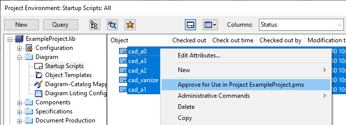 The administrator has approved the sheets for diagrams for use in the project in Project Environment > [library] > Diagram > Startup Scripts.