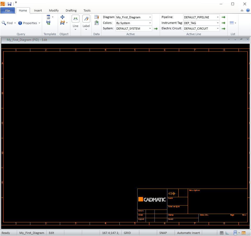 The startup script you selected (cad_a3) sets up the sheet size, the title box, the borderlines, and the grid. These characteristics are all customizable, and a new title box should be made for your company at the least. (Normally, the Project Administrator handles this.)
