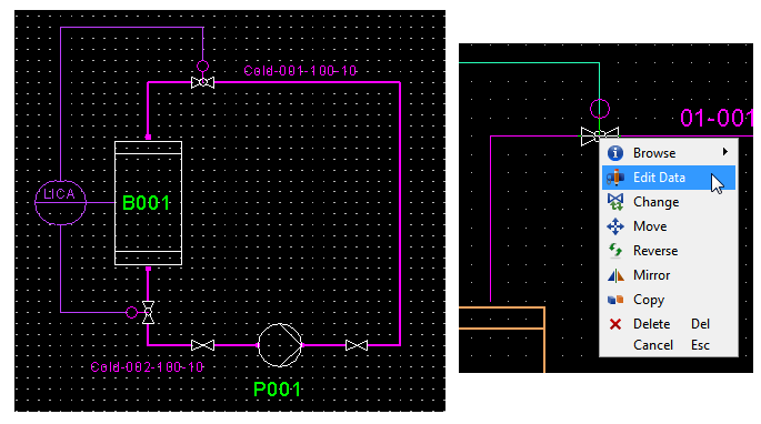 Right-click the object whose data you want to edit.
