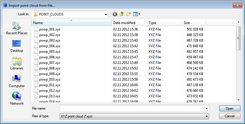 Click Import to select the files to import. The Import point cloud from file dialog opens.
