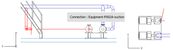 Move the cursor near the second pump suction connection to locate the Z coordinate.