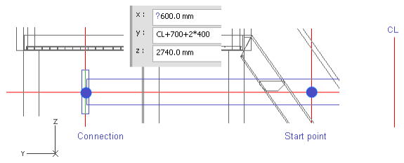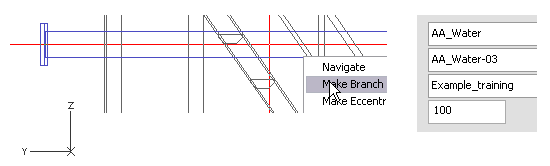 Note: You can also press F11 or Shift+C to lock the cursor to the centerline of the run pipe. That also sets the x and the z coordinates for the branch. It is not necessary to lock the cursor to centerline before branching. However, it is important to move cursor inside the run pipe, and press C to navigate the start point instead of using X, Y, or Z. That is because pressing C locks the cursor but pressing X, Y, or Z does not.