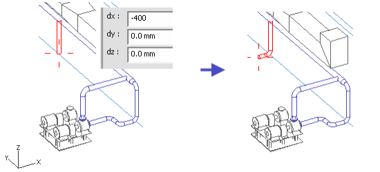 Press D to define the relative movement from the end point of the pipe.
