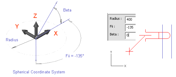 For Beta, enter 0 as the value, because the pipe passes parallel to the XY plane.