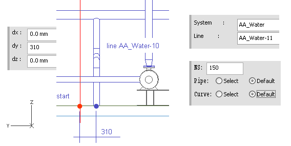 To follow an existing pipe, select Piping > Follow pipe.