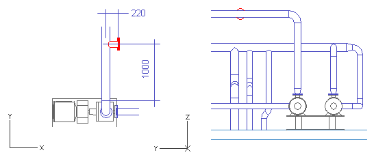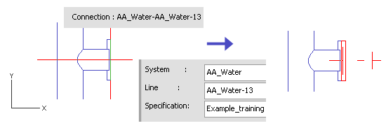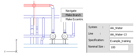 This pipeline starts with a branch from the pipeline AA_Water-04. It consists of a straight pipe segment and two flanges, a normal and a blind one. This exercise teaches you two particular techniques: