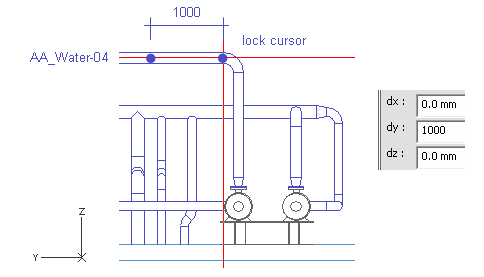 Move the cursor near the midpoint of the elbow on the pipeline AA_Water-04.